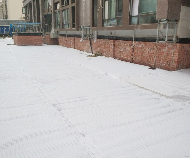 高分子防護排水異型片自粘土工布卷材是由高密度聚乙烯(HDPE)純白原料,在熔融狀態下經真空吸塑一次成型制成,制造出的單向連續密閉殼體型凸起的板狀材料,形成一種膜、殼連接,具有立+體排水空間和一定支撐剛度,液體、氣體可以在其內流動的防護排水卷材。